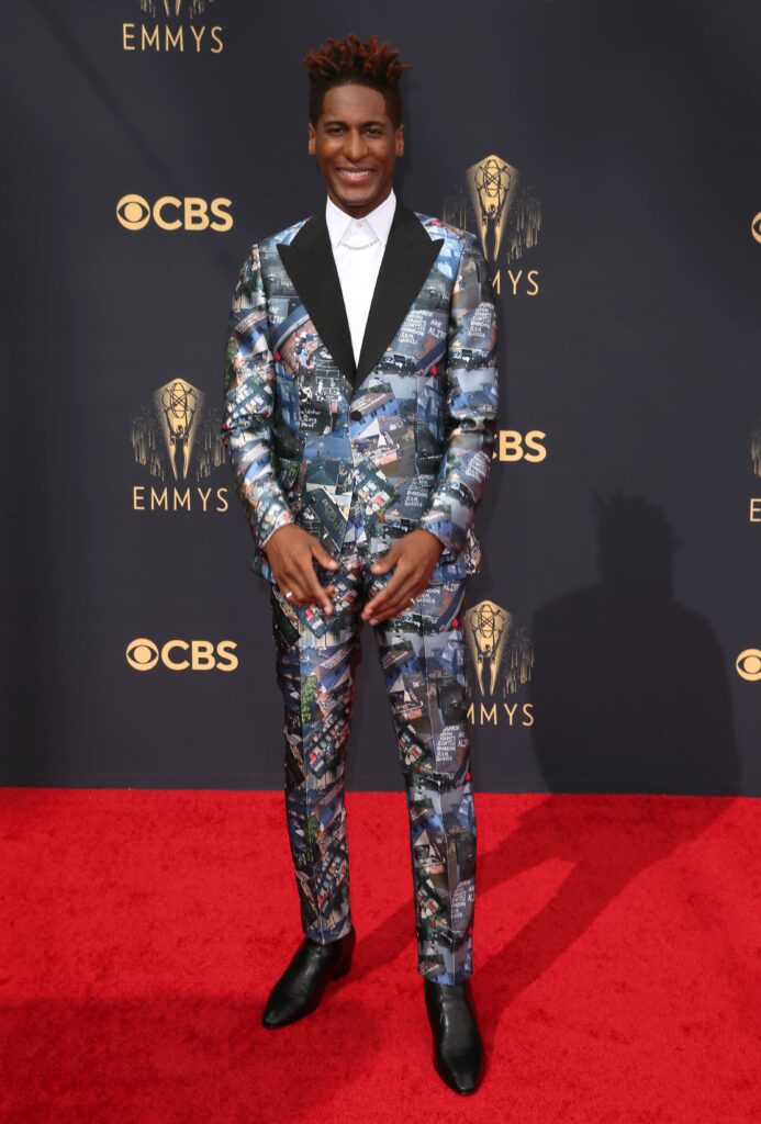El músico y actor rompió con todo al presentarse a la gala con un traje de paisajes de construcción, y otros detalles acompañados de una camisa blanca de cuello tortuga.