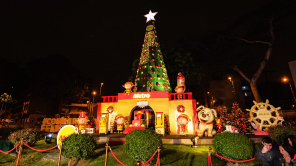 Si deseas ver uno de los árboles de navidad más grandes del centro de Lima, no debes perderte el que está frente a Real Plaza Centro Cívico. La conocida Alameda de los Héroes Navales alberga un espacio navideño de en sueño. En esta ocasión, el encargado de realizar esta decoración fue Metro, quien estructuró la zona con muñecos de cascanueces y duendes.