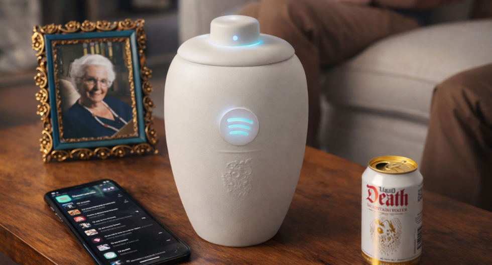 La plataforma de streaming Spotify volvió a llamar la atención del público, pero esta vez no por una función de su app, sino por un objeto inesperado: una urna con altavoz incorporado diseñada para reproducir música como parte de un homenaje simbólico. El producto nace de una colaboración con la marca de bebidas Liquid Death, conocida por sus campañas irreverentes.